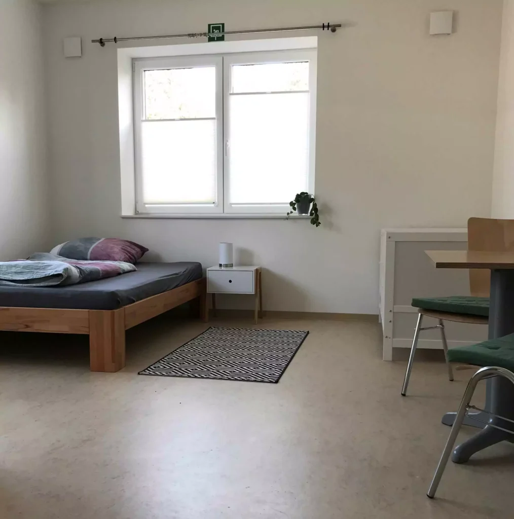 - Die möblierten Wohneinheiten sind mit eigenem Bad und Kochgelegenheit ausgestattet.
