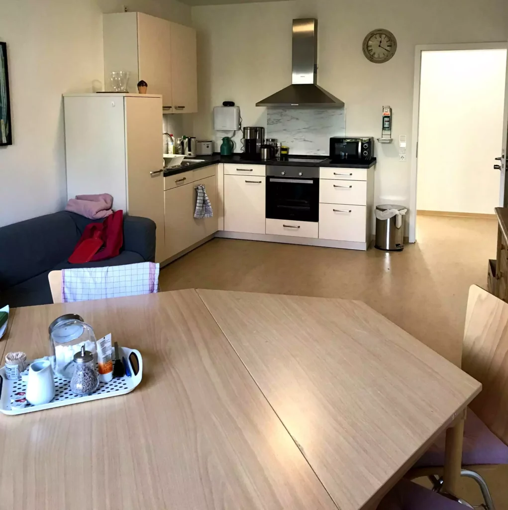- Zu den Gemeinschaftsräumen gehören u.a. ein Bewegungs- und Spielraum, der flexibel genutzt werden kann und eine Gemeinschaftsküche.
